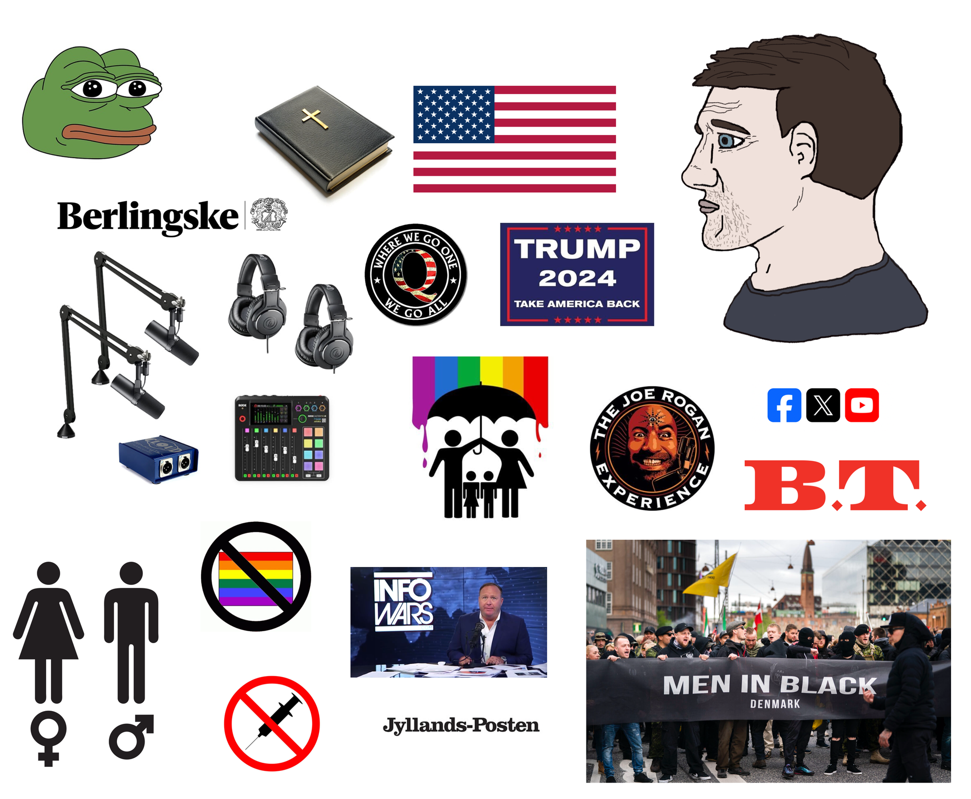 I 2025 deler manosfæren i Danmark både netværk, dagsordener og indimellem direkte samarbejder med konservative kristne, konspirationsteoretikere, højreradikale og “anti-woke” kulturkrigere.